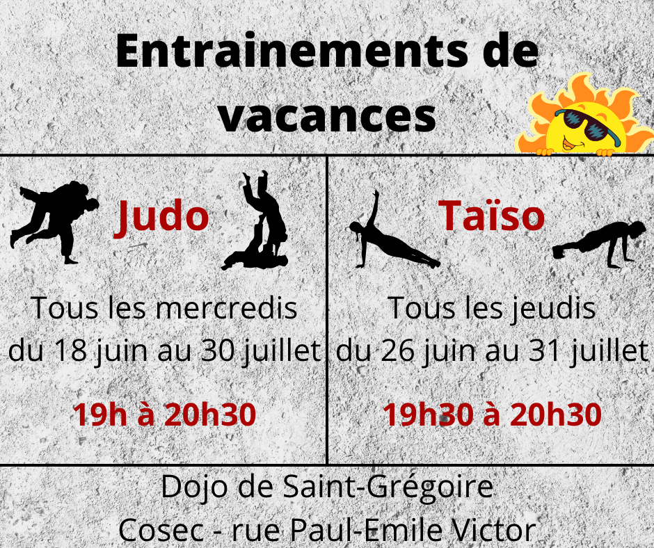 Entrainements de Judo : Tous les mercredis jusqu'au 30 juillet, de 19h à 20h30, au dojo de St Grégoire