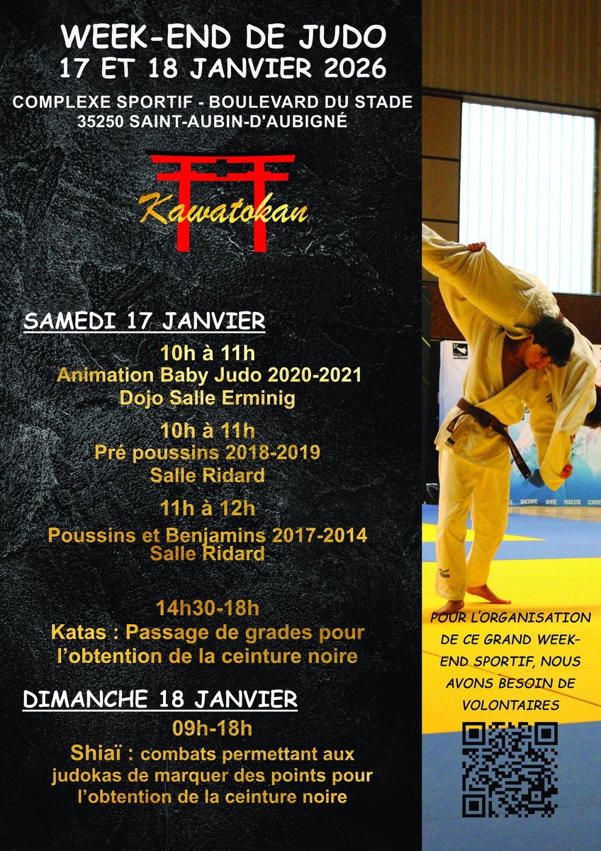 Samedi 17 et dimanche 18 janvier, nous accueillons le passage de grade pour la ceinture noire à St Aubin.